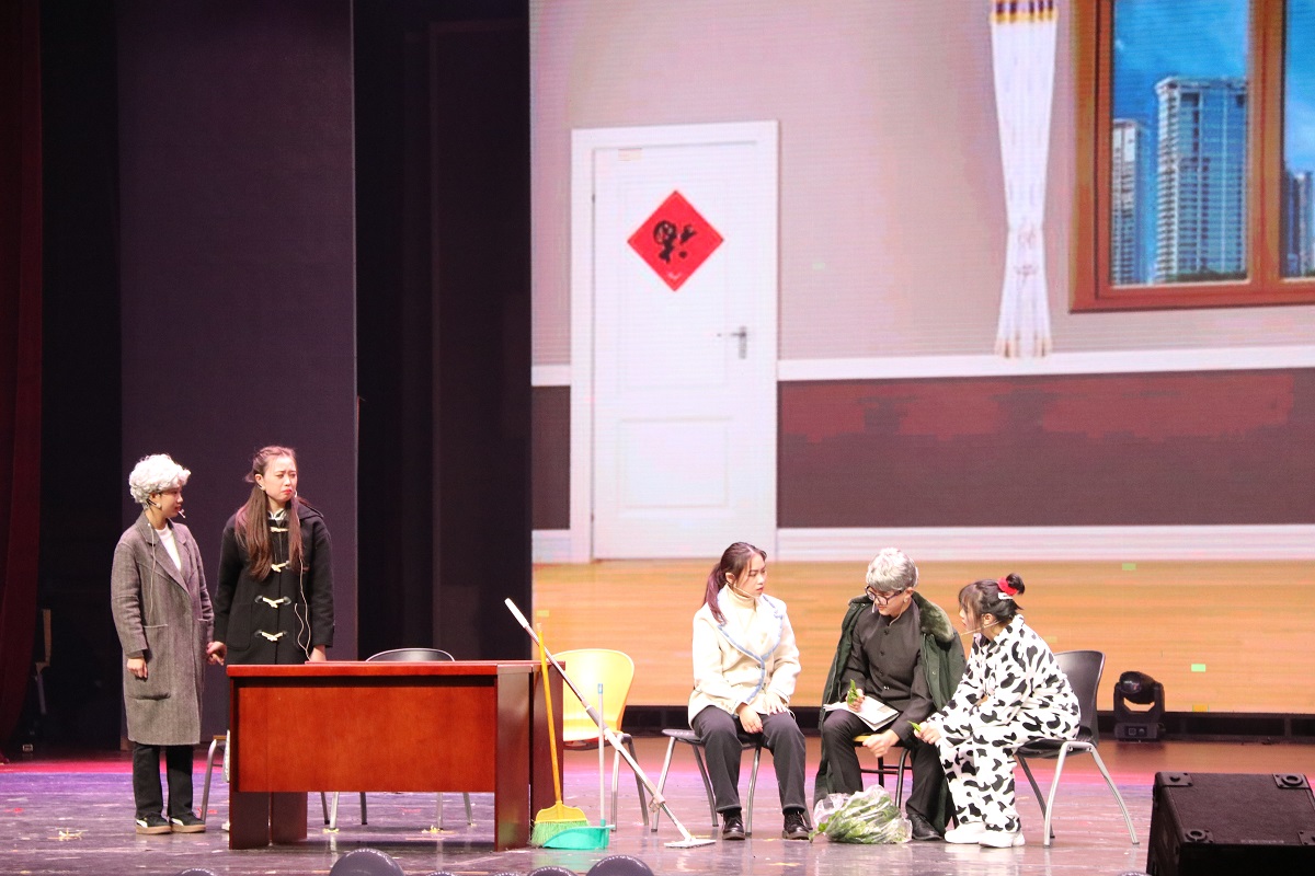 其中,根據(jù)暑期實踐活動改編的情景劇《你好,三下鄉(xiāng)》,表演者帶領觀眾回顧實踐團成員深入基層的實踐故事,展現(xiàn)青年“小我融入大我,青春獻給祖國;助力脫貧攻堅,投身強國偉業(yè)”的責任與擔當。