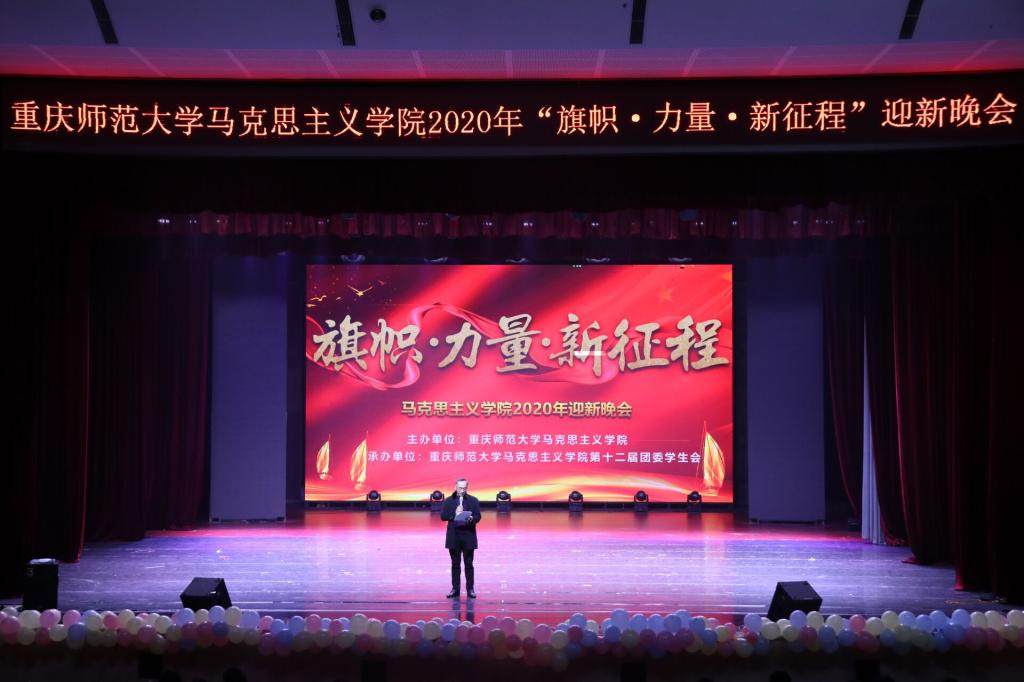 2020年是全面建成小康社會收官之年,是脫貧攻堅決勝之年,更是“兩個一百年”奮斗目標的歷史交匯之年。2020年12月27日19時,重慶師范大學馬克思主義學院特于校友會堂演出廳隆重舉行以“旗幟·力量·新征程”為主題的迎新晚會,喜迎新時代與新同學,同享年末盛典,開啟新年新征程。