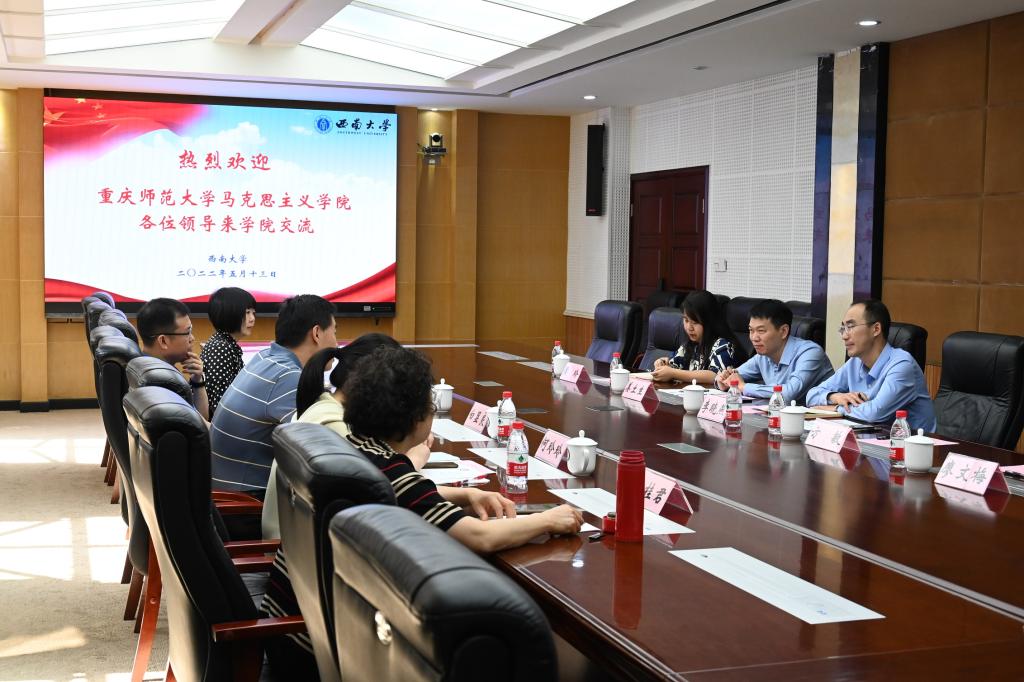 為進(jìn)一步加強(qiáng)學(xué)院教學(xué)科研、學(xué)科建設(shè)、人才培養(yǎng)、師資隊(duì)伍建設(shè)工作,持續(xù)推動(dòng)學(xué)院高質(zhì)量建設(shè)發(fā)展,2022年5月13日上午,我院班子一行特赴西南大學(xué)馬克思主義院進(jìn)行學(xué)習(xí)交流。