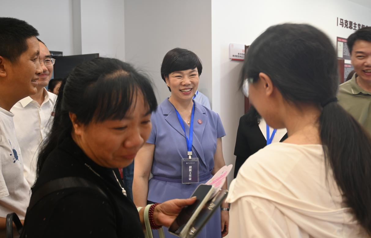 黨委書記張艷,校黨委常委、副校長(zhǎng)黃永宜一行親臨迎新現(xiàn)場(chǎng),慰問辛勤工作的教職員工和志愿者,詳細(xì)了解迎新工作進(jìn)展,并與新生及家長(zhǎng)親切交流,勉勵(lì)新同學(xué)要以飽滿熱情與昂揚(yáng)姿態(tài)開啟大學(xué)新生活,在理論學(xué)習(xí)與實(shí)踐鍛煉中積累知識(shí)、全面發(fā)展。領(lǐng)導(dǎo)的關(guān)懷讓現(xiàn)場(chǎng)師生備受鼓舞。