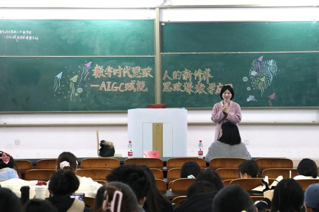 2025年11月19日,我學(xué)院在礪志樓T2113教室開(kāi)展以“數(shù)字時(shí)代思政人的‘新修煉’——AIGC賦能思政課教學(xué)應(yīng)用”為主題的講座,特邀重慶市江北區(qū)教師進(jìn)修學(xué)院中心教育教學(xué)研究中心副主任譚娟老師主講,2023級(jí)包括“協(xié)同提質(zhì)計(jì)劃”學(xué)生在內(nèi)的思想政治教育專(zhuān)業(yè)全體本科生參加學(xué)習(xí)。