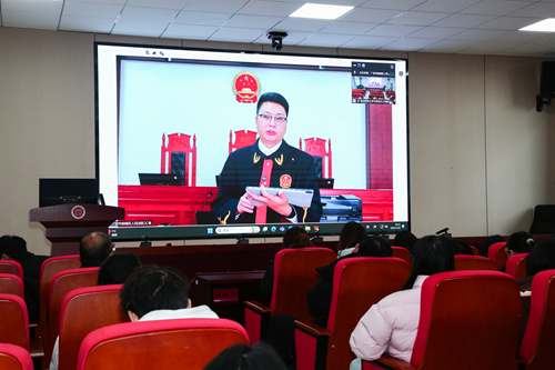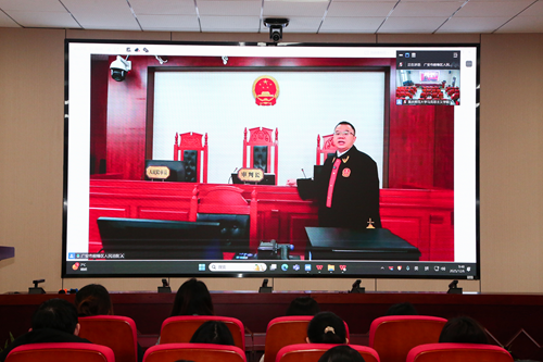 “這堂來(lái)自‘云’端的法律課堂,把書(shū)本上的法律直接呈現(xiàn)到眼前,讓我感受到庭審的嚴(yán)謹(jǐn)和法律的威嚴(yán)!”“讓人在校內(nèi)課堂足不出戶(hù)而飛躍千里之外,倍感新奇而向往!”“第一次如此近距離地走進(jìn)莊嚴(yán)而神圣的法院,第一次了解到人民法院的真實(shí)模樣!”“第一次了解到法院和法庭的設(shè)計(jì)布局竟然有這么多的獨(dú)特細(xì)節(jié)和深刻意蘊(yùn)!”這是一堂形式新穎、內(nèi)容深刻、入腦又入的法治思政課,成為眾多聽(tīng)課學(xué)生的共同感受。