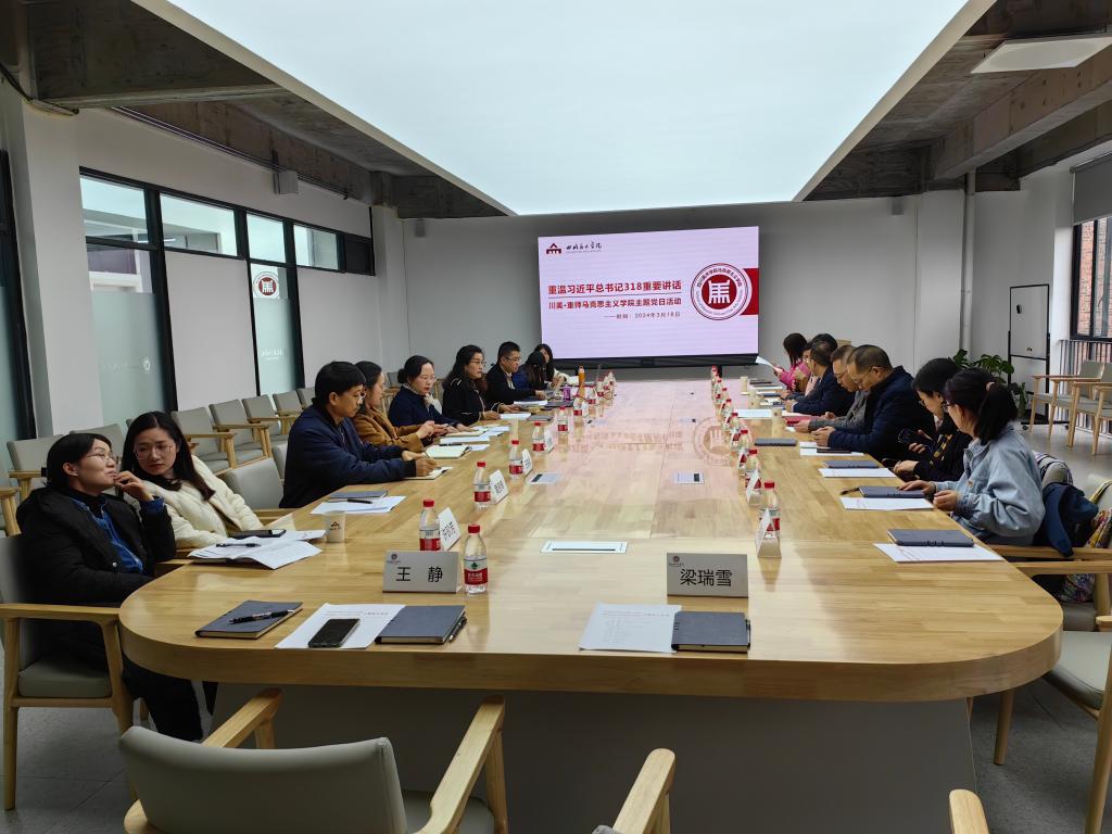 為深入學(xué)習(xí)習(xí)近平總書記3.18講話,加強(qiáng)黨建交流,促進(jìn)黨建工作高質(zhì)量發(fā)展,3月18日下午,我院黨委書記李曉燕帶隊赴四川美術(shù)學(xué)院馬克思主義學(xué)院聯(lián)合開展主題黨日活動。四川美院馬克思主義學(xué)院直屬黨支部書記王鳳英、副書記鄭紅芳,雙方學(xué)院師生黨員代表20余人參加。