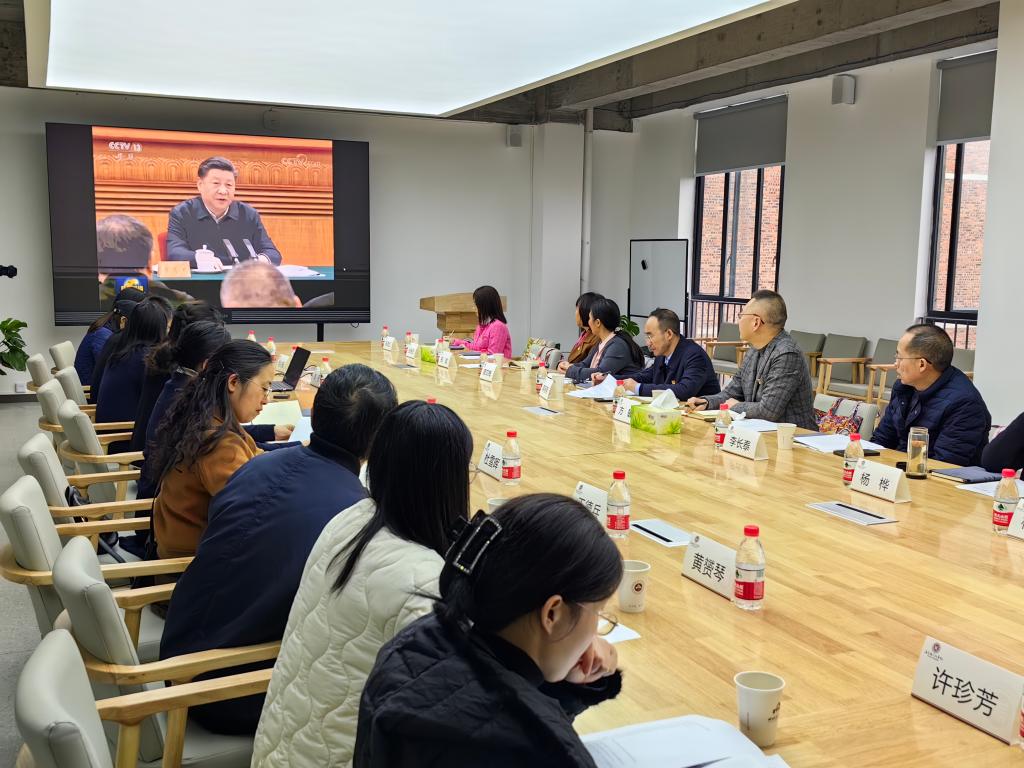 接下來,鄭紅芳副書記介紹《重慶日報》318講話專題報道之《四川美術(shù)學(xué)院“思政+藝術(shù)”讓藝術(shù)之美在思想中閃光》。她表示,川美馬院始終以習(xí)近平新時代中國特色社會主義思想為指導(dǎo),落實立德樹人根本任務(wù),不斷探索“思政+藝術(shù)”思想政治教育模式,引領(lǐng)教師成為教書育人的“大先生”,引領(lǐng)學(xué)生爭做德藝雙馨的人民藝術(shù)家。