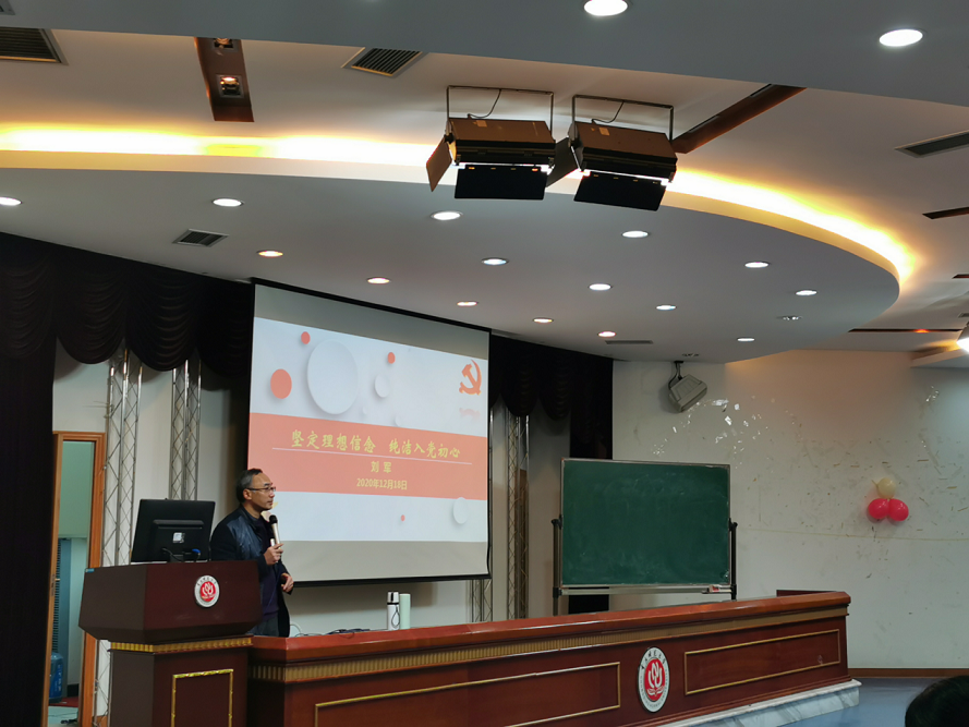 為堅(jiān)定學(xué)生的理想信念,純潔入黨初心,立志成長(zhǎng)成才,12月18日下午,馬克思主義學(xué)院在凱撒報(bào)告廳開(kāi)展了“堅(jiān)定理想信念 純潔入黨初心”的主題黨課。本次講座由學(xué)院黨委書(shū)記劉軍主講,黨委副書(shū)記方敏主持,2019級(jí)全體同學(xué)參加。