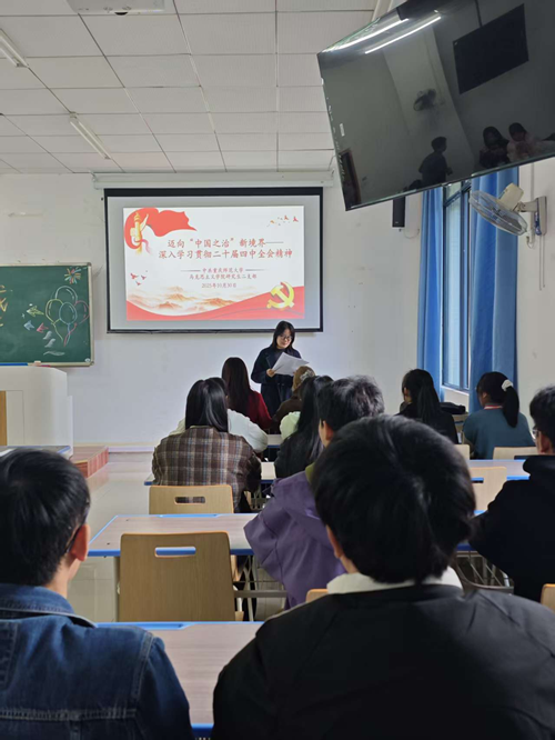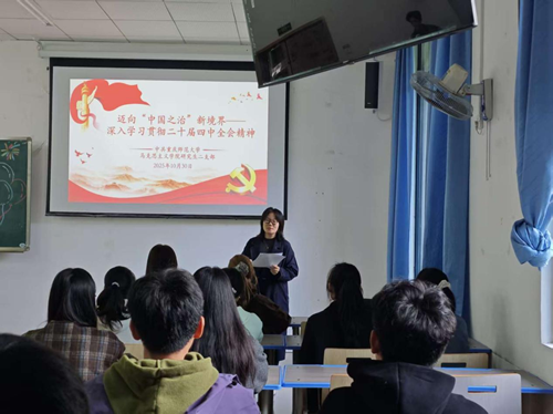 2025年10月30日13:30,研究生二支部在匯賢樓X103教室組織開展了以《邁向“中國之治”新境界——深入學(xué)習(xí)貫徹黨的二十屆四中全會精神》為題的主題黨日活動。支部書記代悅主持會議并總結(jié)講話。支部全體黨員參加會議。