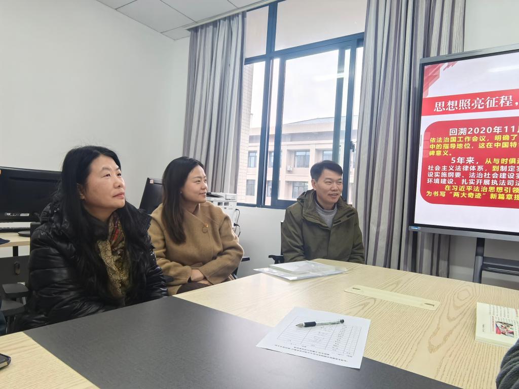 在本次主題黨日活動中,支委成員侯發(fā)兵以《以高質(zhì)量法治保障中國式現(xiàn)代化行穩(wěn)致遠》為題進行了講黨課。講課過程中,梳理了近幾年我國法治建設領域的一些“大事”,在此基礎上明確要深刻把握全面依法治國的歷史性成就——習近平法治思想。在明確高質(zhì)量法治五大方面要求的基礎上,強調(diào)以高質(zhì)量法治保障中國式現(xiàn)代化行穩(wěn)致遠。