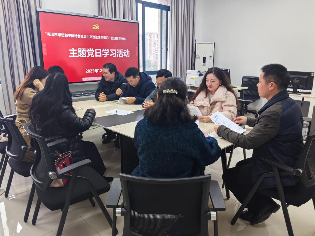 2025年12月25日下午16:20,毛中特概論教研室黨支部12月主題黨日活動在馬克思主義學院匯賢樓410室舉行,支部黨員圍繞“第一議題”等內(nèi)容開展深入學習。支委成員侯發(fā)兵主持會議并講黨課。學院黨委委員姜土生同志到會指導。