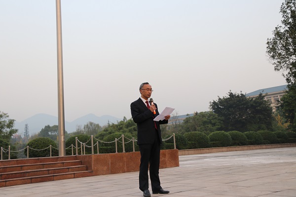 升國旗儀式結束,活動進入第二階段,學院黨委書記劉軍作國旗下講話。