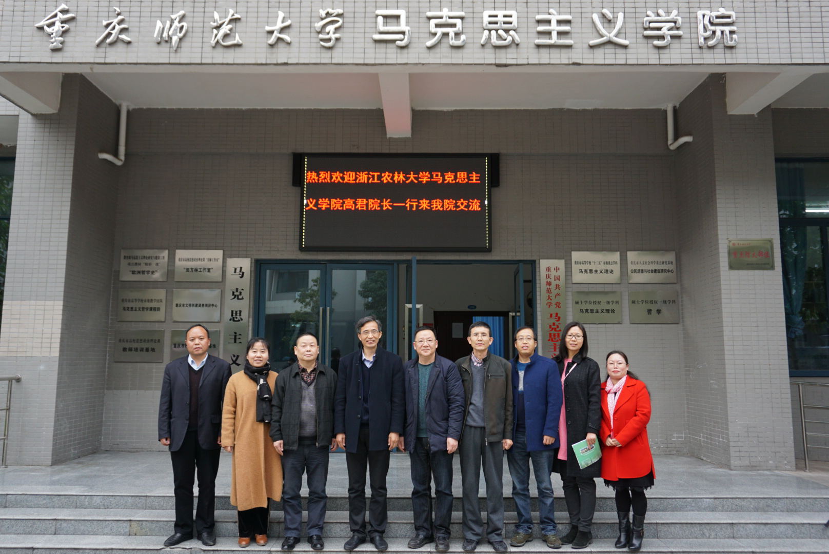此次交流主要圍繞學(xué)科建設(shè)、學(xué)術(shù)研討、研究生招生與培養(yǎng)等方面進(jìn)行。陳洪院長介紹了學(xué)院的發(fā)展歷史、學(xué)科建設(shè)、專業(yè)建設(shè)、師資隊伍、人才培養(yǎng)、思政課改革等概況,并就我院確立奮斗目標(biāo)、搭建學(xué)科團(tuán)隊、創(chuàng)造必要條件、制定激勵措施、引領(lǐng)支撐思政理論課教學(xué)、服務(wù)地方發(fā)展、學(xué)術(shù)交流等學(xué)科建設(shè)方面的舉措作了介紹。陳院長講到,我院未來三年的奮斗目標(biāo)是以馬克思主義理論學(xué)科為龍頭,積極爭取博士授權(quán)點申報成功;在學(xué)術(shù)研討方面,我院秉承“請進(jìn)來”和“走出去”的原則,一方面邀請知名專家進(jìn)校開展學(xué)術(shù)講座,另一方面我院教師參與到外校學(xué)術(shù)交流,同時每年通過開展研究生學(xué)術(shù)活動月、參加重慶市研究生馬克思主義論壇等推進(jìn)學(xué)術(shù)交流。況明安副院長就我院本科生思想政治教育實踐教學(xué)和公共課的網(wǎng)絡(luò)教學(xué)部分作了詳細(xì)介紹,分享了我院思想政治理論課實踐教學(xué)和網(wǎng)絡(luò)教學(xué)的具體流程。隨后,高君院長也對浙江農(nóng)林大學(xué)馬克思主義學(xué)院的發(fā)展概況、學(xué)科建設(shè)情況、學(xué)術(shù)研討、研究生招生與培養(yǎng)情況做了詳細(xì)介紹,并就相關(guān)問題開展了交流。在交流過程中,雙方圍繞思想政治理論課實踐教學(xué)和網(wǎng)絡(luò)教學(xué)問題展開了討論交流,大家認(rèn)為,在思想政治教育教學(xué)研究問題上,教學(xué)應(yīng)該回歸課堂,堅守好課堂主渠道,向課堂要質(zhì)量。