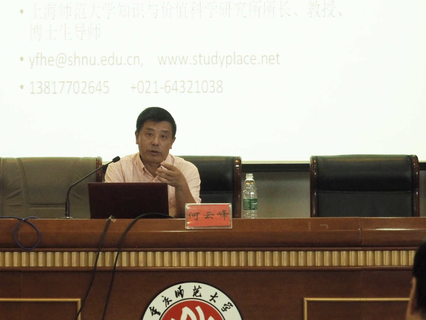 9月20日上午9:00,上海師范大學(xué)知識(shí)與價(jià)值科學(xué)研究所所長、博士生導(dǎo)師何云峰教授應(yīng)我院邀請(qǐng)?jiān)诤氲聵莿P撒報(bào)告廳作了主題為“馬克思勞動(dòng)幸福理論及其當(dāng)代價(jià)值”的學(xué)術(shù)講座。本次講座由陳洪院長主持,2017和2018級(jí)本科生、研究生和學(xué)院老師聆聽了講座。