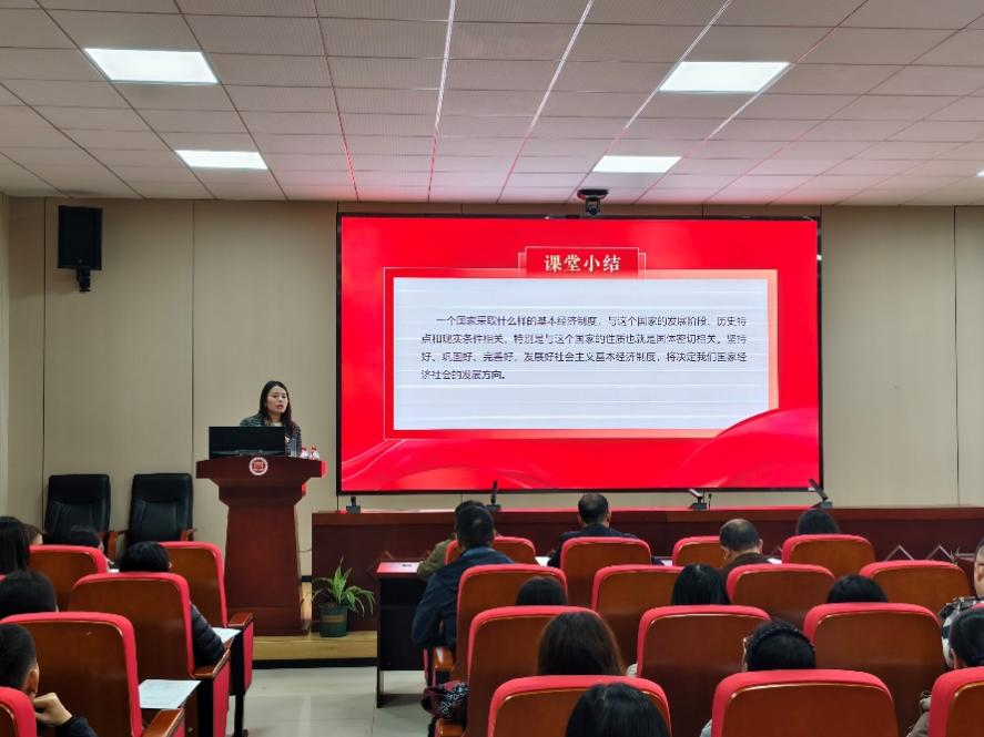 首先,孫貝博士以《習近平新時代中國特色社會主義思想概論》課程中的“推動高質(zhì)量發(fā)展”為主題進行教學展示。她用豐富的內(nèi)容突出教學主題,使授課對象對高質(zhì)量發(fā)展有了更深入的了解,明確了高質(zhì)量發(fā)展是新時代我國經(jīng)濟社會發(fā)展的鮮明主題,是全面建設(shè)社會主義現(xiàn)代化國家的首要任務(wù)。