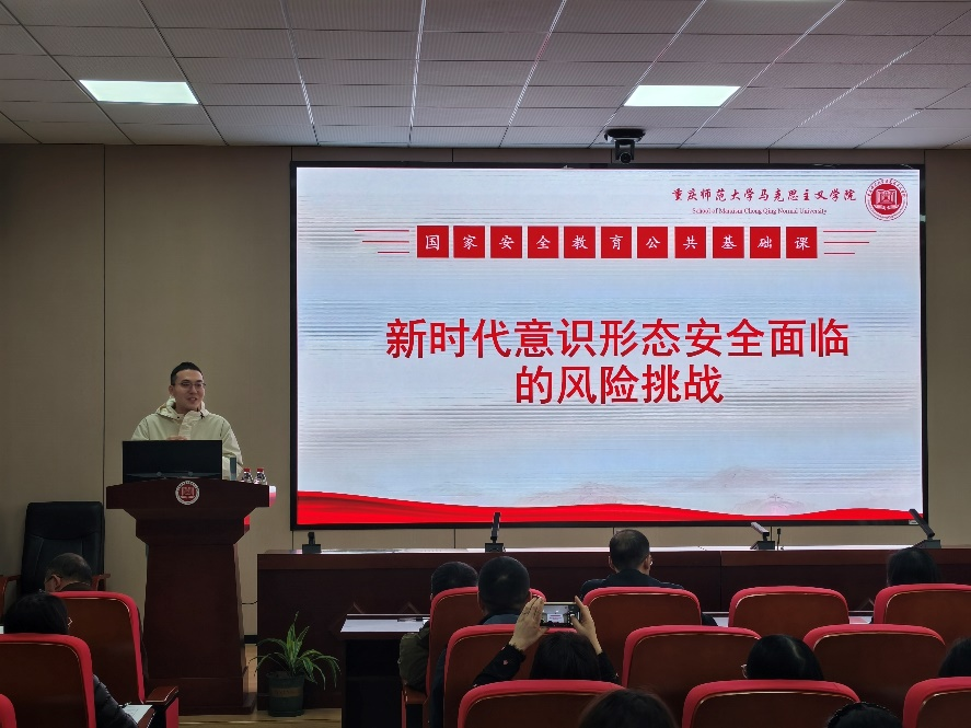 張藝立博士圍繞《國家安全教育》中“維護意識形態(tài)安全”這一課題,用豐富的視頻資料和生活案例,明確了理解“以政治安全為根本”的科學內(nèi)涵的關(guān)鍵在于“三個維護”,分別從意識形態(tài)工作是黨的一項極端重要的工作、意識形態(tài)領(lǐng)域斗爭復雜尖銳、如何維護意識形態(tài)的安全等三個方面層層遞進,以飽滿的熱情和良好的姿態(tài)展現(xiàn)出年輕思政課教師的活力與激情。