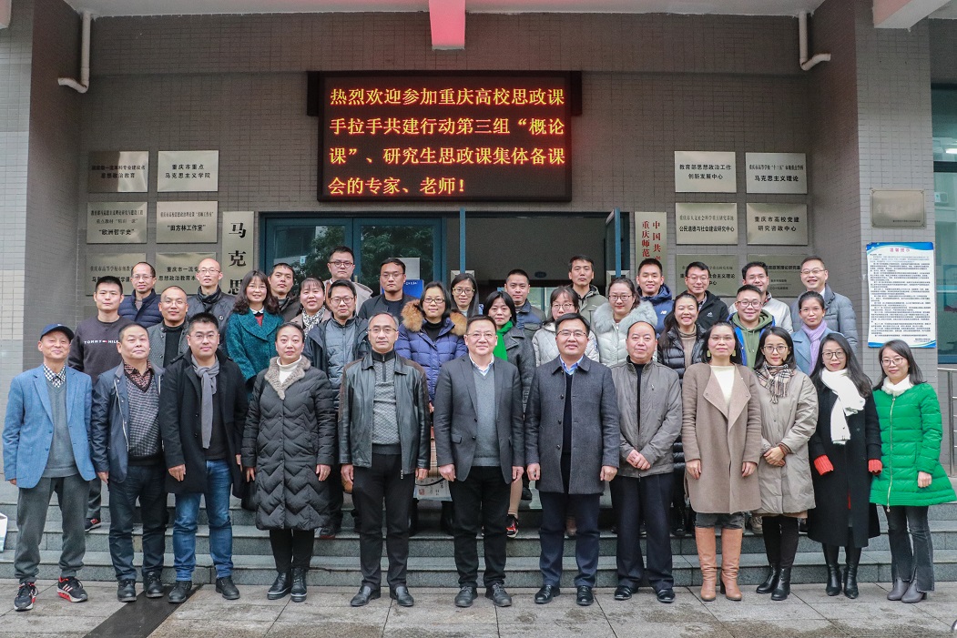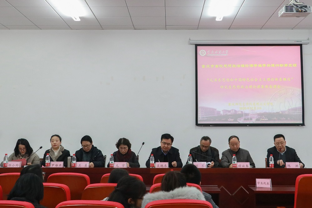 2020年12月3日14:30,重慶市高校思想政治理論課手拉手共建行動(dòng)第三組“毛澤東思想和中國(guó)特色社會(huì)主義理論體系概論”、研究生思想政治理論課集體備課會(huì)在我校匯賢樓馬克思主義學(xué)院X106會(huì)議室舉行。重慶師范大學(xué)、重慶科技學(xué)院、四川美術(shù)學(xué)院、重慶警察學(xué)院、重慶機(jī)電職業(yè)技術(shù)大學(xué)的馬克思主義學(xué)院相關(guān)負(fù)責(zé)人,“毛澤東思想和中國(guó)特色社會(huì)主義理論體系概論”、研究生思想政治理論課教師、學(xué)生代表60余人參會(huì)。