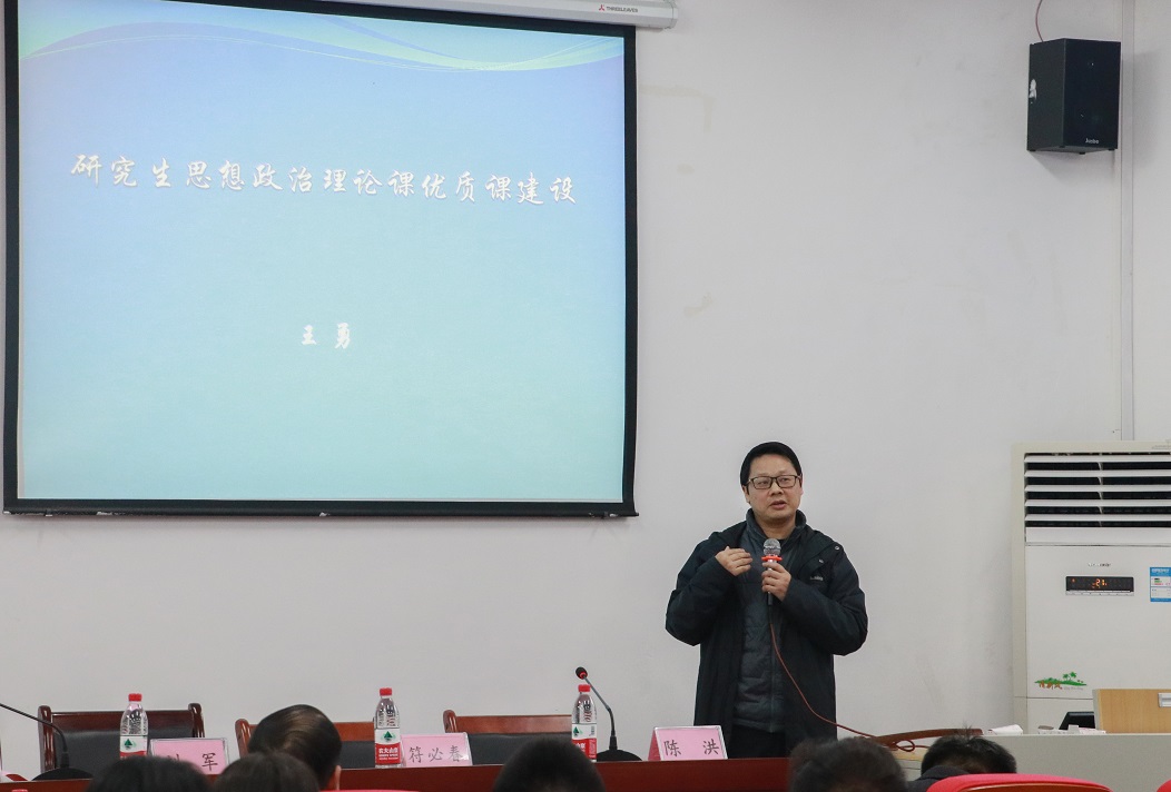 活動(dòng)分兩個(gè)階段進(jìn)行。第一階段的活動(dòng)由重慶師范大學(xué)馬克思主義學(xué)院院長(zhǎng)陳洪教授主持。會(huì)議伊始,重慶師范大學(xué)馬克思主義學(xué)院黨委書(shū)記劉軍致辭,他對(duì)參會(huì)人員的到來(lái)表示誠(chéng)摯問(wèn)候和熱烈歡迎,并從師資隊(duì)伍、學(xué)科建設(shè)、思想政治理論課教學(xué)改革取得的成績(jī)等方面介紹了學(xué)院情況。接著,學(xué)校黨委常委、宣傳部部長(zhǎng)毛宇教授講話(huà),她指出手拉手備課是校際之間、教師之間聯(lián)動(dòng)、聯(lián)通的資源共享平臺(tái),努力做好思政課集體備課,實(shí)現(xiàn)思政課春風(fēng)化雨的效果,是非常重要而有意義的工作。接著,活動(dòng)進(jìn)入專(zhuān)家引領(lǐng)環(huán)節(jié)。西南大學(xué)馬克思主義學(xué)院副院長(zhǎng)、博士生導(dǎo)師吳艷東教授,根據(jù)西南大學(xué)思想政治理論課教學(xué)改革經(jīng)驗(yàn),從“抓體制機(jī)制建設(shè),強(qiáng)化組織領(lǐng)導(dǎo)”“抓課程體系建設(shè),強(qiáng)化內(nèi)容供給”“抓教育教學(xué)改革,強(qiáng)化教學(xué)實(shí)效”“抓師資隊(duì)伍建設(shè),強(qiáng)化人才支撐”“抓重點(diǎn)馬院建設(shè),強(qiáng)化課程平臺(tái)”五方面分享了西南大學(xué)思政課教學(xué)改革經(jīng)驗(yàn)。他提出,廣大思政課教師應(yīng)對(duì)習(xí)近平新時(shí)代中國(guó)特色社會(huì)主義思想融入思政課進(jìn)行深入探究。隨后,重慶市研究生思想政治理論課優(yōu)質(zhì)課程負(fù)責(zé)人、我校馬克思主義學(xué)院王勇教授緊緊圍繞“研究生思想政治理論課優(yōu)質(zhì)課程建設(shè)”,從歷史與現(xiàn)狀、實(shí)踐與經(jīng)驗(yàn)、問(wèn)題與反思三個(gè)方面介紹了我校研究生思想政治理論課優(yōu)質(zhì)課程建設(shè)的經(jīng)驗(yàn)。最后,是示范課堂環(huán)節(jié),重慶師范大學(xué)馬克思主義學(xué)院副教授張金國(guó)博士以“堅(jiān)持中國(guó)特色社會(huì)主義政治發(fā)展道路”為主題,從“歷史邏輯”、“理論邏輯”、“實(shí)踐邏輯”三個(gè)維度講授了堅(jiān)持走中國(guó)特色社會(huì)主義政治發(fā)展道路的必然性。他的課堂旁征博引、生動(dòng)有趣,獲得現(xiàn)場(chǎng)師生一致好評(píng)。