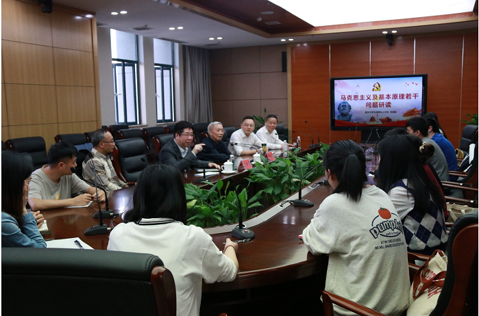 梅教授首先詳細(xì)介紹了馬克思主義理論學(xué)科的成立背景及發(fā)展過程,強(qiáng)調(diào)了中央對馬克思主義理論學(xué)科的高度重視,闡明了馬克思主義基本原理是該學(xué)科的基礎(chǔ)和核心,并建議該學(xué)科的研究生一定要重視馬克思主義理論相關(guān)著作的學(xué)習(xí)。梅教授從建立馬克思主義理論學(xué)科的初衷及其學(xué)科地位出發(fā),介紹了馬克思主義理論學(xué)科與馬克思主義哲學(xué)、馬克思主義政治經(jīng)濟(jì)學(xué)、科學(xué)社會(huì)主義等學(xué)科之間的關(guān)系,他認(rèn)為要對馬克思主義進(jìn)行整體性研究,并指明習(xí)近平新時(shí)代中國特色社會(huì)主義思想之所以具有強(qiáng)大的戰(zhàn)斗力就在于堅(jiān)持了馬克思主義基本原理,同時(shí)又與毛澤東思想、鄧小平理論、“三個(gè)代表”重要思想和科學(xué)發(fā)展觀一脈相承。