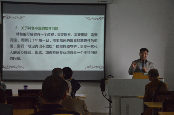 首先,袁祖社教授介紹了中國高等教育內(nèi)涵發(fā)展背景下“雙一流”工程建設(shè)。袁祖社教授強調(diào),內(nèi)涵式發(fā)展是高等教育的必然選擇,高等學(xué)校特色專業(yè)建設(shè)是優(yōu)化專業(yè)結(jié)構(gòu)、提高人才培養(yǎng)質(zhì)量、辦出專業(yè)水平和特色的重要措施,是實現(xiàn)內(nèi)涵式發(fā)展的有力保障。他重點介紹了國家級特色專業(yè)的基本內(nèi)涵、背景以及培育方略問題,認(rèn)為應(yīng)該從師資隊伍建設(shè)、資源保障、制度建設(shè)等方面促進(jìn)特色專業(yè)建設(shè)。