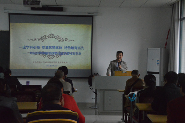 接著,袁教授與學(xué)院教職工分享了思想政治教育國家級特色專業(yè)建設(shè)的基本情況和陜西師范大學(xué)的一些探索和經(jīng)驗,介紹了陜西師范大學(xué)2016級思想政治教育培養(yǎng)方案(師范類、非師范類),并對全國思想政治教育專業(yè)歷史和當(dāng)前全國思想政治專業(yè)的發(fā)展態(tài)勢作出分析。
