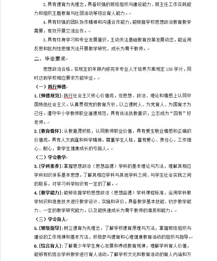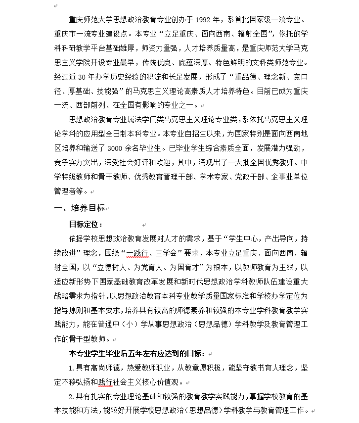 重慶師范大學(xué)2020級(jí)思想政治教育專業(yè)(師范)本科人才培養(yǎng)方案