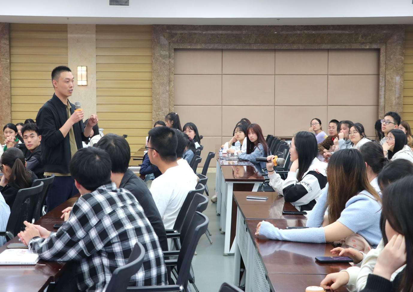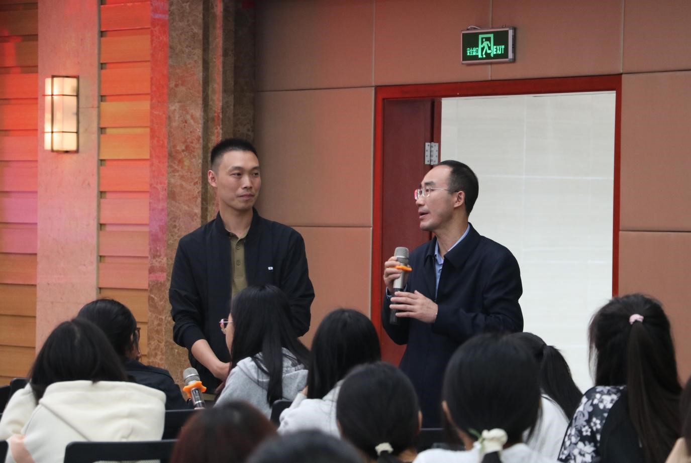 隨后,冉崇軍老師走下講臺,與同學(xué)們展開深入交流。同學(xué)們就“優(yōu)師計劃”中學(xué)涯、職涯設(shè)計,實踐實習(xí)教學(xué)安排等相關(guān)問題進(jìn)行了提問。冉崇軍老師從多角度、全方位進(jìn)行了耐心地解答,幫助同學(xué)們更好地從自身職業(yè)發(fā)展角度出發(fā),慎重思考未來的奮斗路徑。現(xiàn)場氛圍濃烈,掌聲不斷。