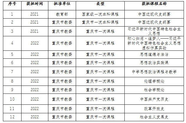 近三年,我院高度重視本科教學工作,學院教師積極投身本科課程教學改革與創(chuàng)新。經(jīng)過多年對課程設(shè)計、課堂改革、教學理念和教法研究等多維度的思考和建設(shè),我院獲批1門國家級一流本科課程、11門重慶市一流本科課程。
